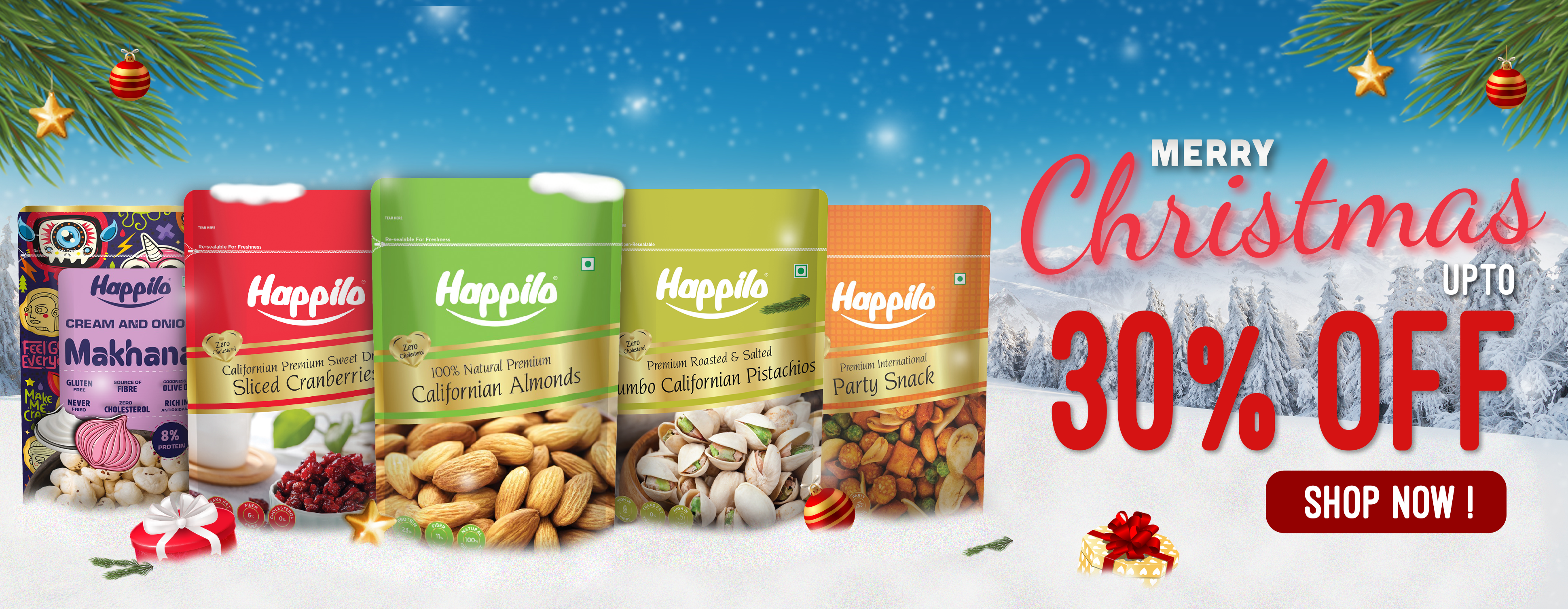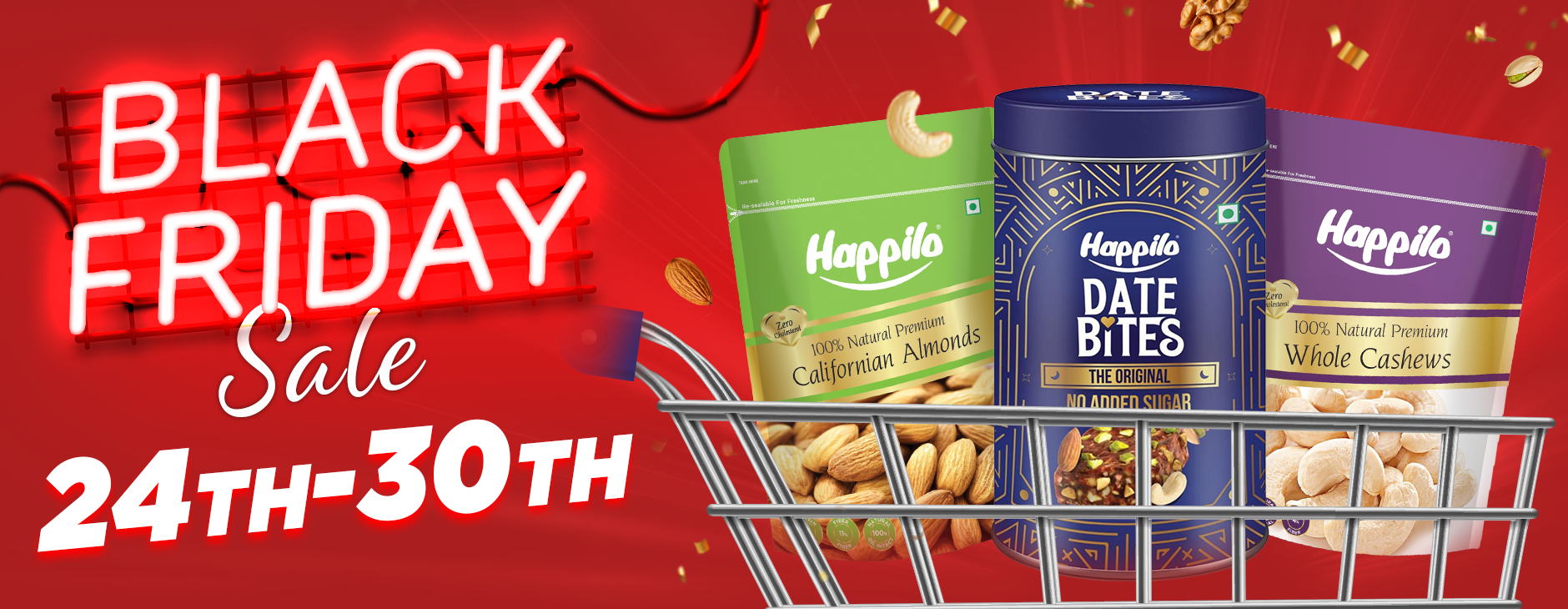 Happilo's premium dry fruits & nuts are gluten free, non-GMO certified, zero trans-fat, zero cholesterol, high in protein, high in fibre, no added sugar, flavours & preservatives. Explore the healthy snacks and grab from our range of best dried fruits, trail mixes, premium dates, dry fruit combos and more.