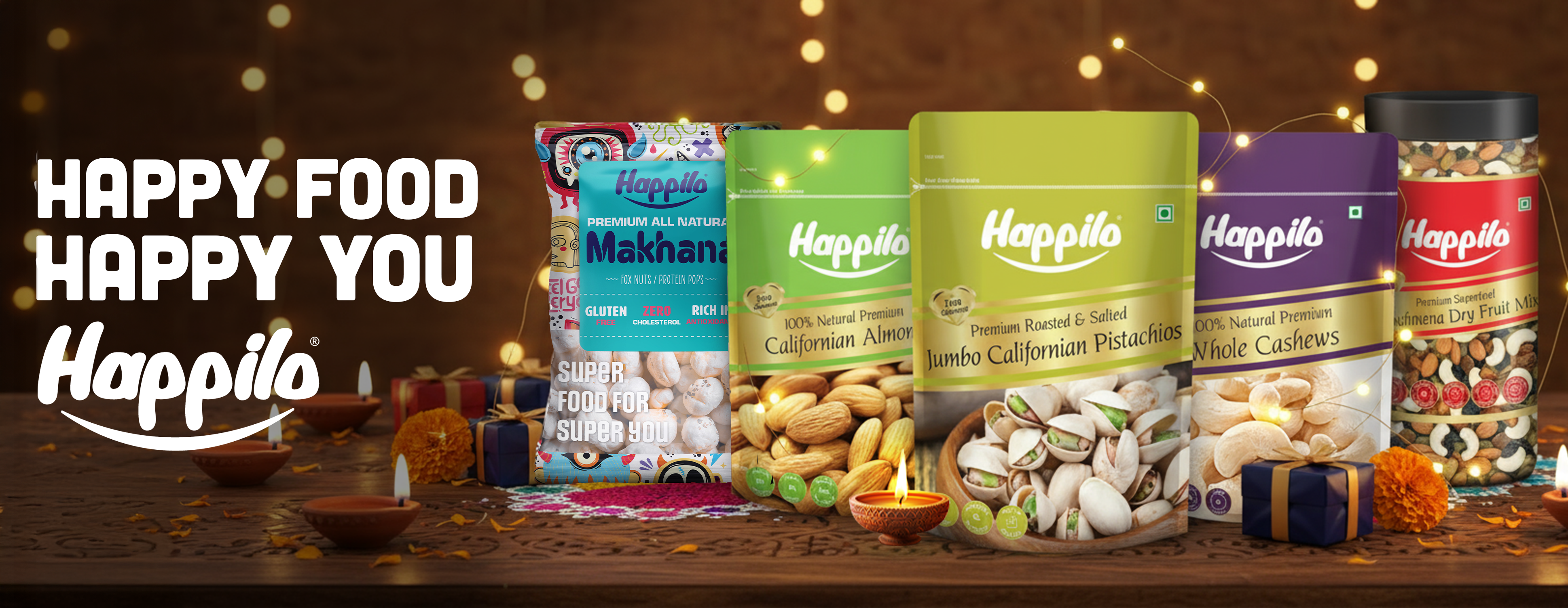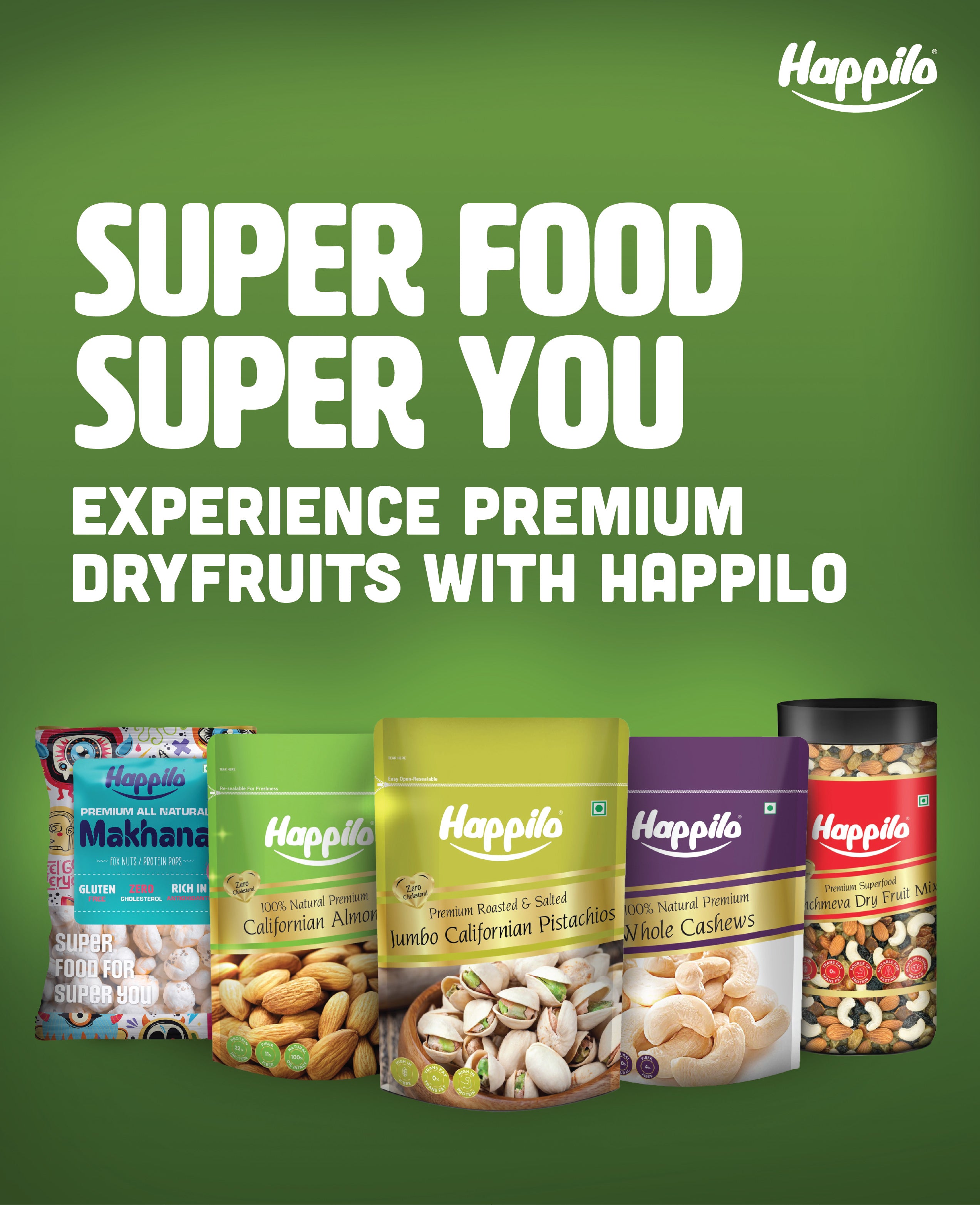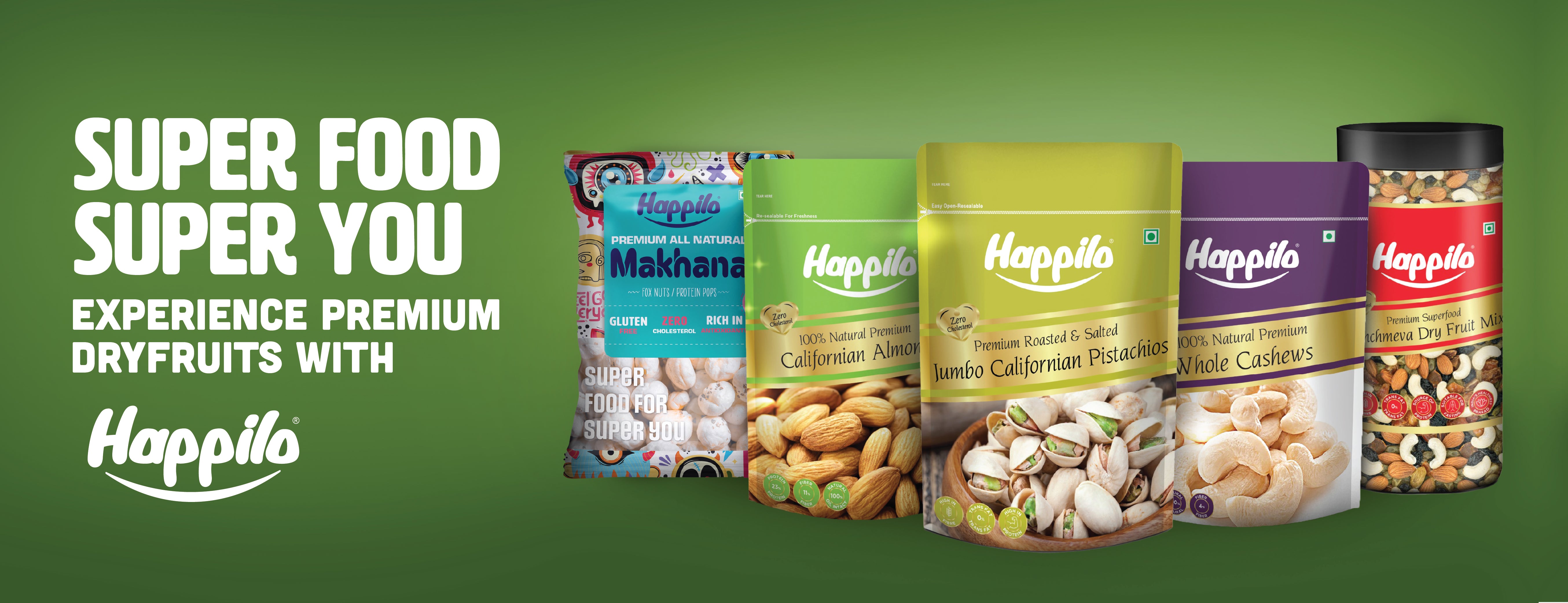 Happilo is the one-stop destination for premium dry fruits and seeds. We believe in healthy snacking without feeling guilty. You can buy dry fruits online, seeds, and dry fruit mixes for your daily nutrition. Explore our new range of products such as Makhana, Chickpeas, Dry Fruit bars, Spreads and Peanut Butter. Happilo’s dried fruits are high in protein, and you can have it anytime, anywhere.