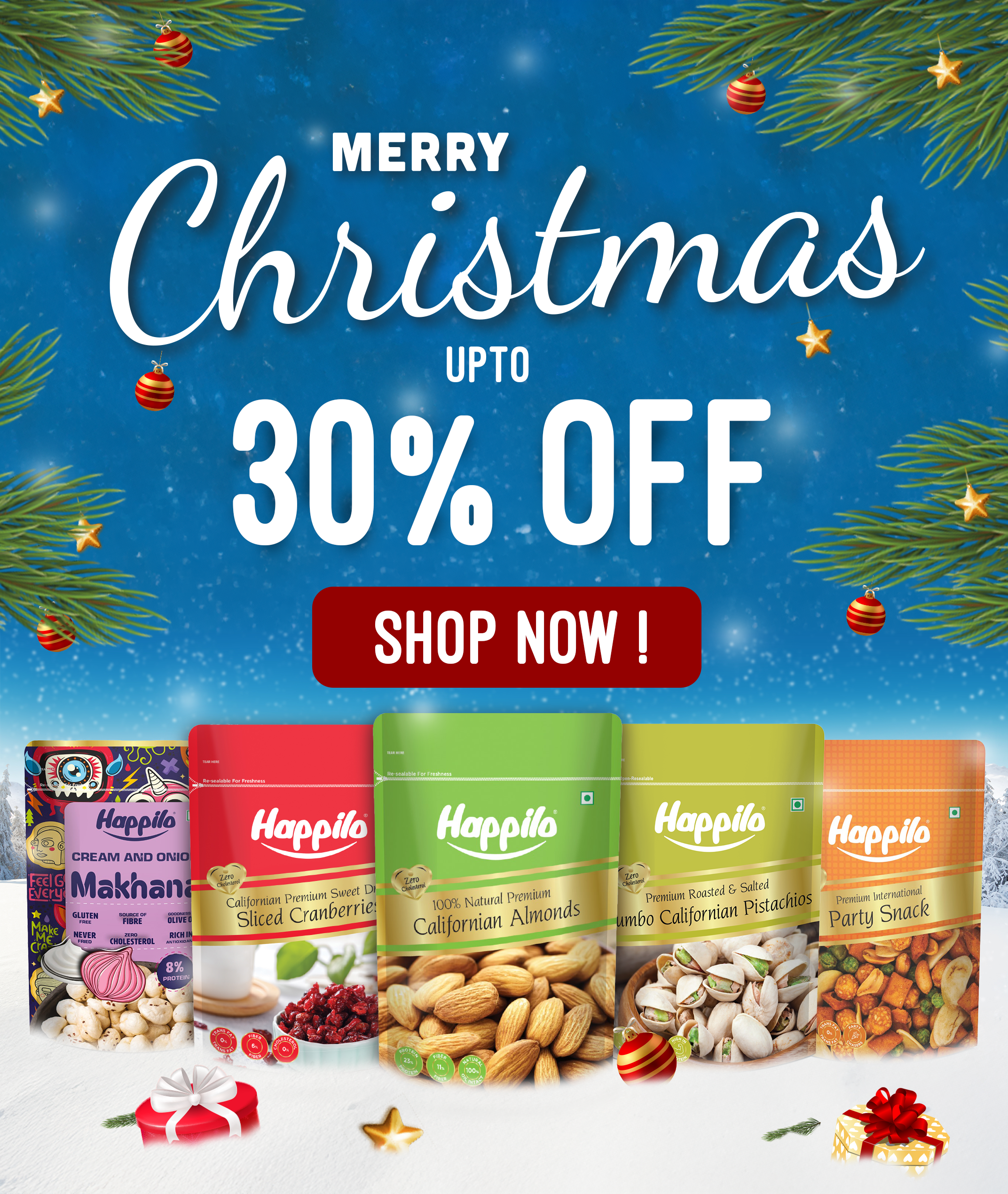 Happilo's premium dry fruits & nuts are gluten free, non-GMO certified, zero trans-fat, zero cholesterol, high in protein, high in fibre, no added sugar, flavours & preservatives. Explore the healthy snacks and grab from our range of best dried fruits, trail mixes, premium dates, dry fruit combos and more.